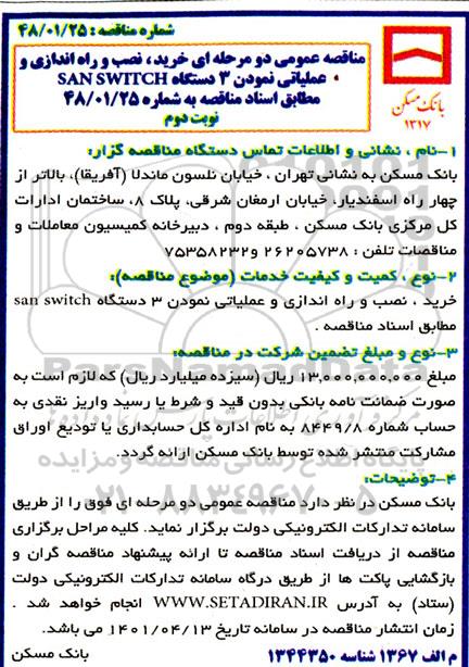 مناقصه عمومی دو مرحله ای خرید نصب و راه اندازی عملیاتی نمودن 3 دستگاه SAN SWITCH مطابق اسناد مناقصه به شماره 48/01/25 ؟