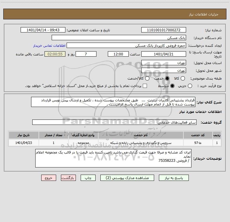 شرح کلی نیاز: قرارداد پشتیبانی کاربران اینترنت ... طبق مشخصات پیوست شده ، تکمیل و ارسال پیش نویس قرارداد پیوست شده تا قبل از اتمام مهلت ارسال پاسخ الزامیست .