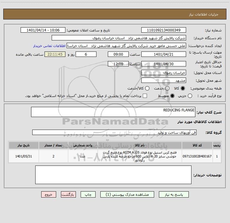 نام دستگاه خریدار:شرکت پالایش گاز شهید هاشمی نژاد استان خراسان رضوی