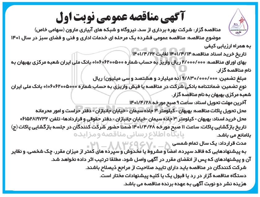 مناقصه گزار: شرکت بهره برداری از سد، نیروگاه و شبکه های آبیاری مارون (سهامی خاص)