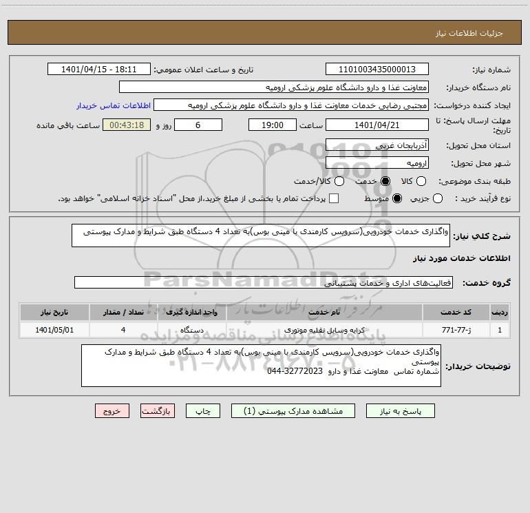 توضیحات خریدار:واگذاری خدمات خودرویی(سرویس کارمندی با مینی بوس)به تعداد 4 دستگاه طبق شرایط و مدارک پیوستی