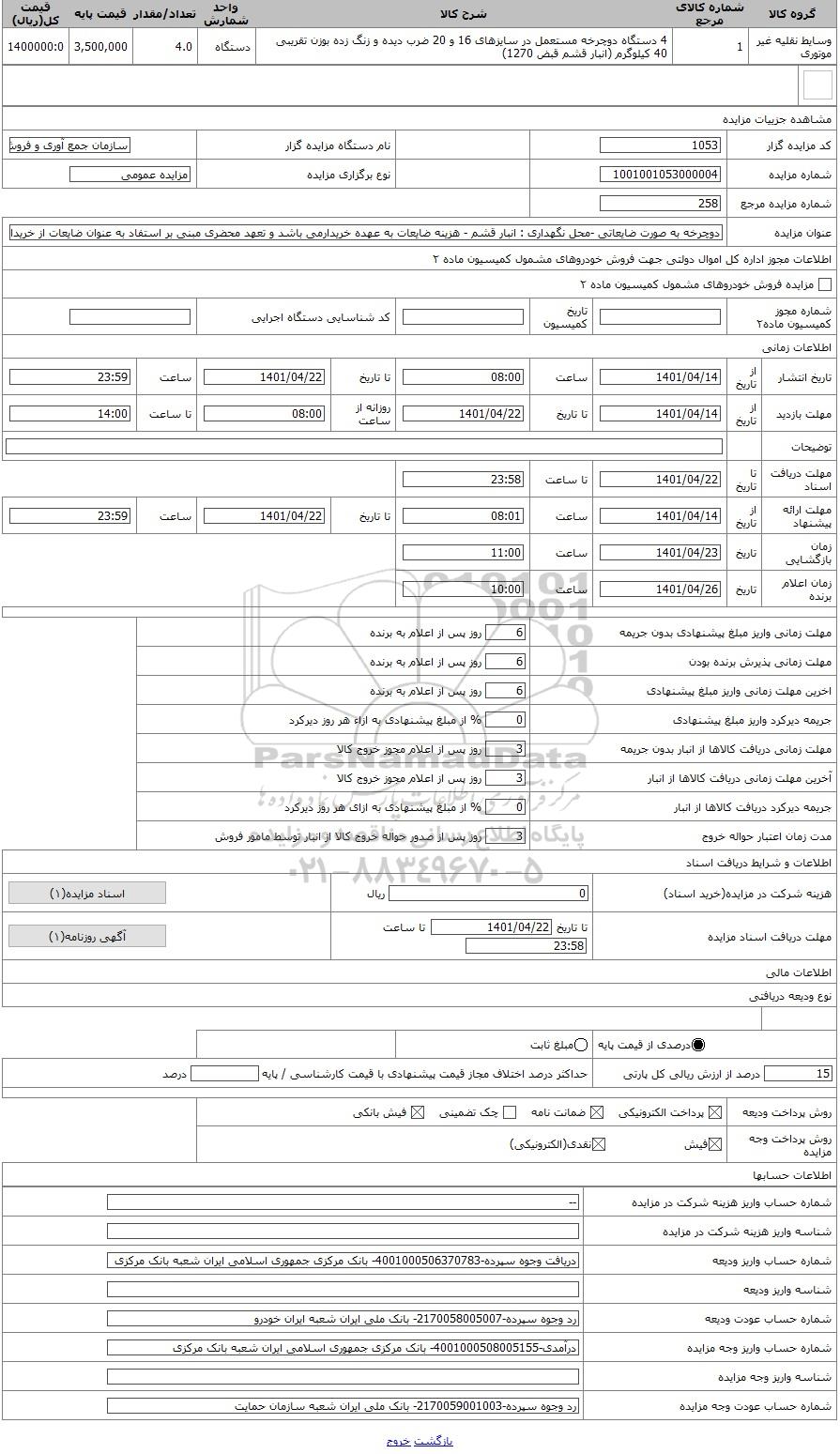 کد مزایده گزار1053نام دستگاه مزایده گزارسازمان جمع آوری و فروش اموال تملیکی