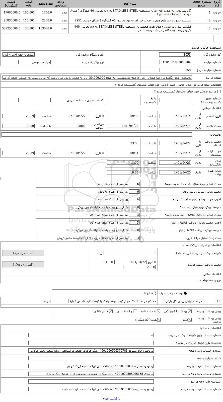 شماره پارتی1101001053003346نوع برگزاری مزایده مزایده عمومی