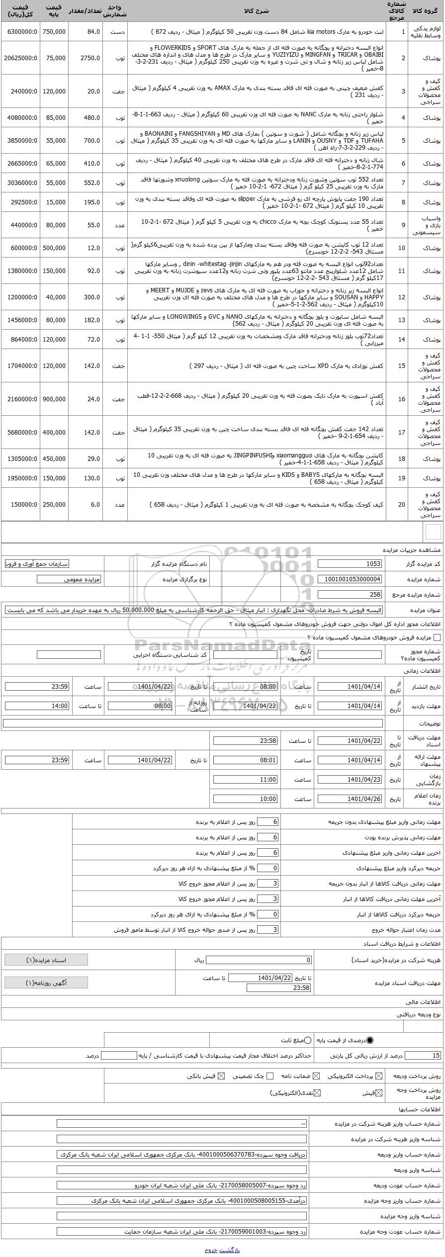 کد مزایده گزار1053نام دستگاه مزایده گزارسازمان جمع آوری و فروش اموال تملیکی