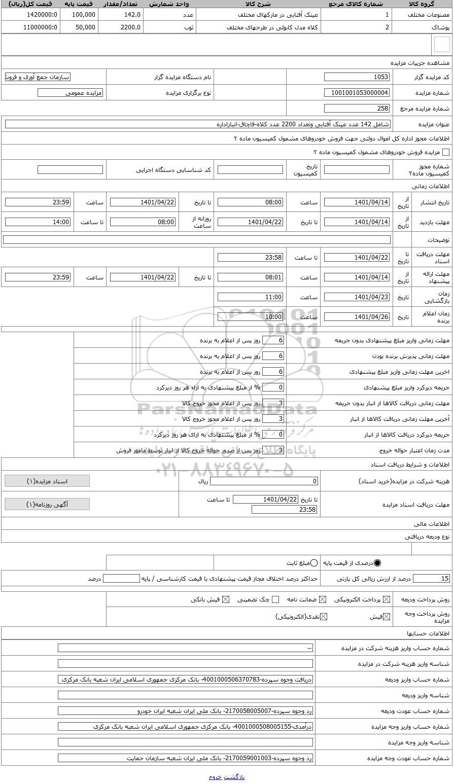 کد مزایده گزار1053نام دستگاه مزایده گزارسازمان جمع آوری و فروش اموال تملیکی