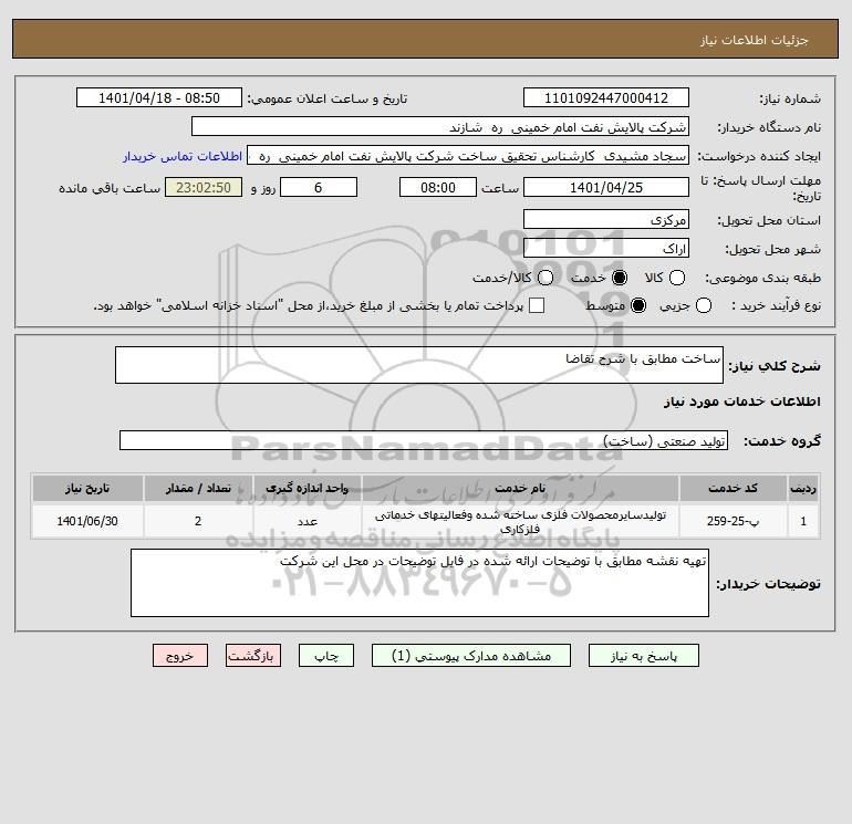 شرح کلی نیاز: ساخت مطابق با شرح تقاضا