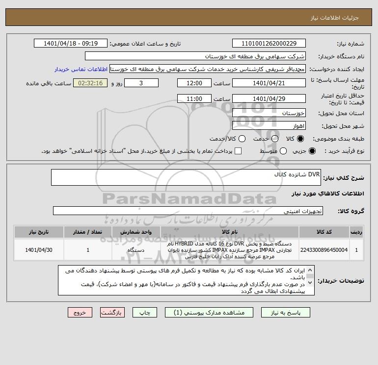 نام دستگاه خریدار:شرکت سهامی برق منطقه ای خوزستان