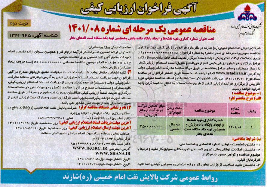 آگهی فراخوان ارزیابی کیفی مناقصه عمومی یک مرحله ای شماره 1401/08 - نوبت دوم ؟