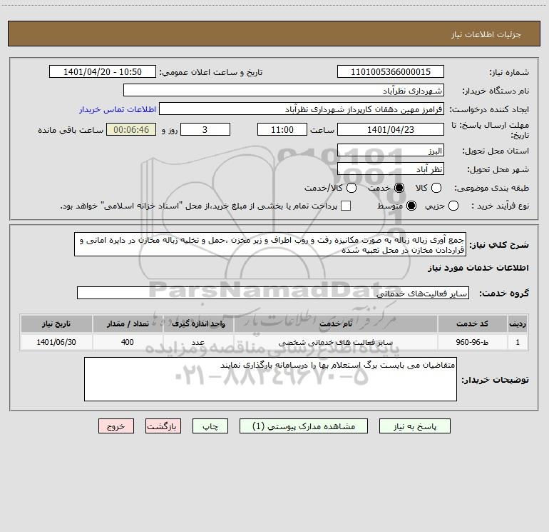 استعلام جمع آوری زباله زباله به صورت مکانیزه رفت و روب اطراف و زیر مخزن ،حمل و تخلیه زباله مخازن در دایره امانی و قراردادن مخازن در محل تعبیه شده, استعلام جمع آوری زباله زباله به صورت مکانیزه رفت و روب اطراف و زیر مخزن ،حمل و تخلیه زباله مخازن در دایره امانی و قراردادن مخازن در محل تعبیه شده