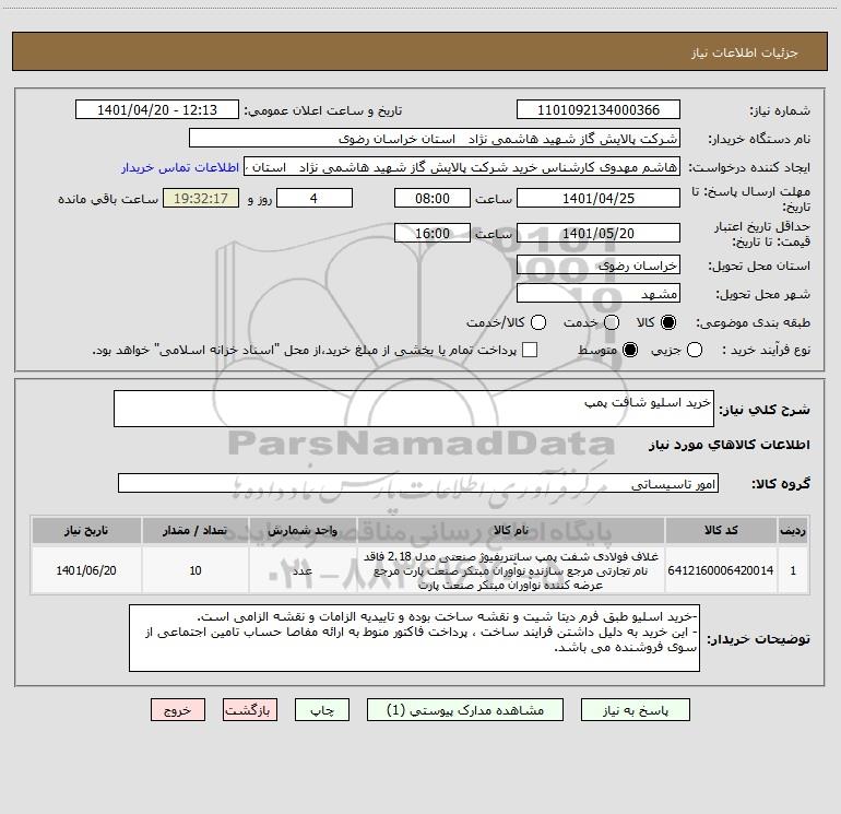نام دستگاه خریدار:شرکت پالایش گاز شهید هاشمی نژاد استان خراسان رضوی