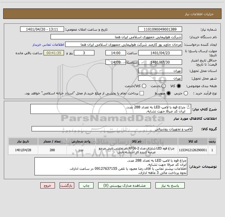 توضیحات خریدار:چراغ قوه با لامپ LED به تعداد 288 عدد. ایران کد صرفا جهت تشابه. اطلاعات بیشتر تماس با آقای رضا معبود با تلفن 09127637155 در ساعت اداری. نحوه پرداخت مالی 3 ماهه اداری.