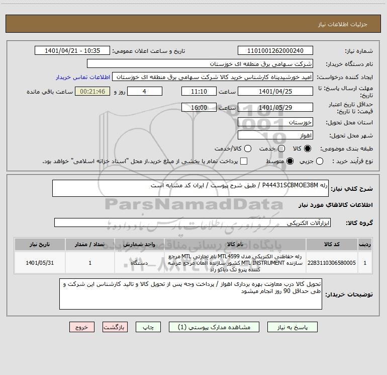 شرح کلی نیاز: رله P44431SCBMOE38M / طبق شرح پیوست / ایران کد مشابه است