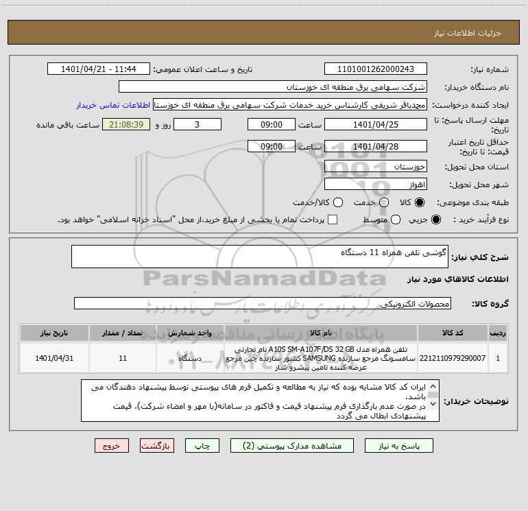 شرح کلی نیاز: گوشی تلفن همراه 11 دستگاه
