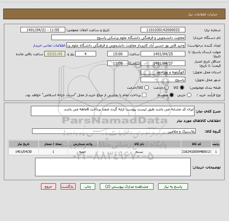 نام دستگاه خریدار:معاونت دانشجویی و فرهنگی دانشگاه علوم پزشکی یاسوج