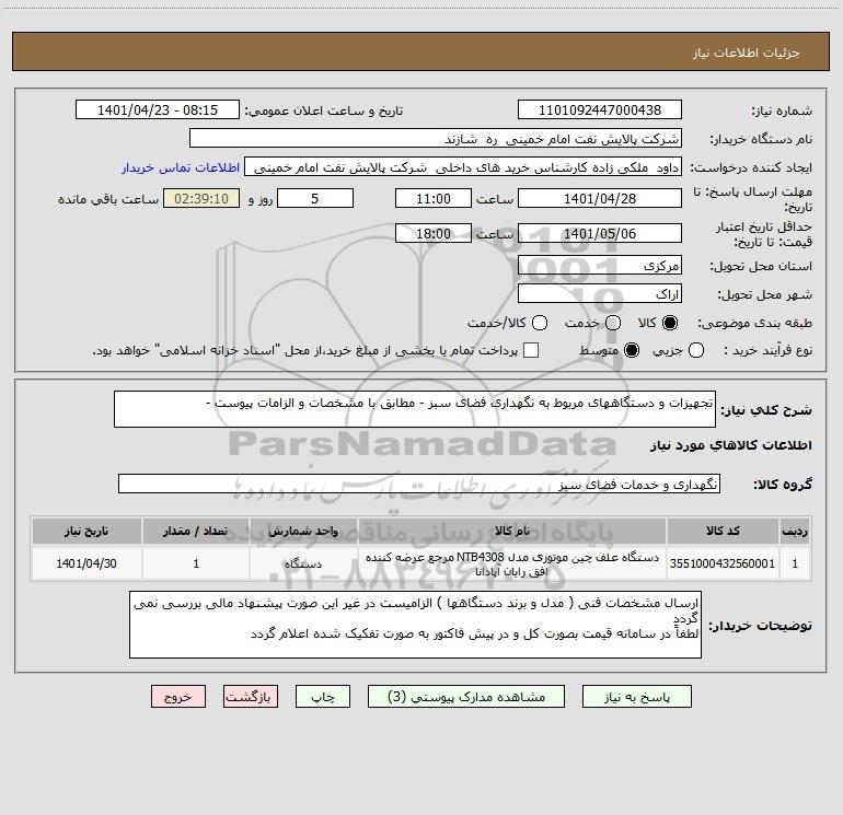 شرح کلی نیاز: تجهیزات و دستگاههای مربوط به نگهداری فضای سبز - مطابق با مشخصات و الزامات پیوست -
