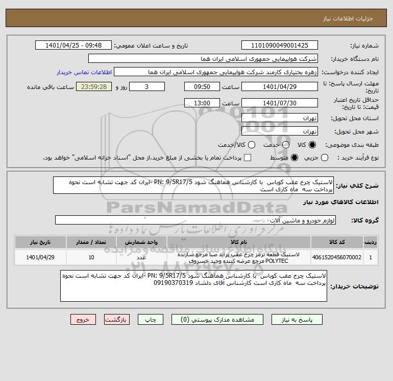 نام دستگاه خریدار:شرکت هواپیمایی جمهوری اسلامی ایران هما