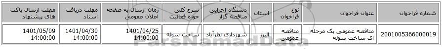 2001005366000019مناقصه عمومی یک مرحله ای ساخت سوله مناقصه عمومیالبرزشهرداری نظرآبادساخت سوله 1401/04/25 14:00:001401/04/30 14:00:001401/05/09 14:00:00