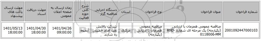 مناقصه، مناقصه عمومی همزمان با ارزیابی (یکپارچه) یک مرحله ای شماره RND-0118006-MM از کلیه افراد متخصص و شرکتها واجد شرایط دعوت به عمل میآید در مناقصه با کد خبرگزاری پارس نماد: 4729773 شرکت نمایند.