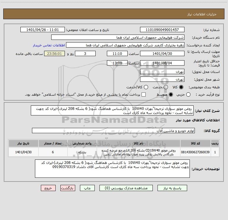 نام دستگاه خریدار:شرکت هواپیمایی جمهوری اسلامی ایران هما