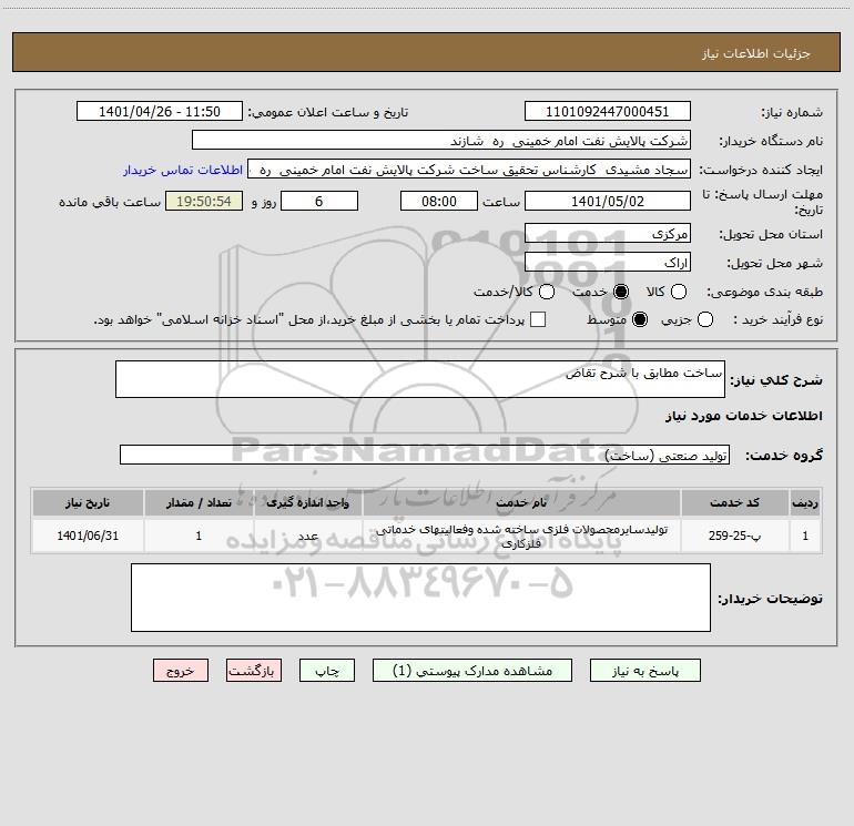 شرح کلی نیاز: ساخت مطابق با شرح تقاض