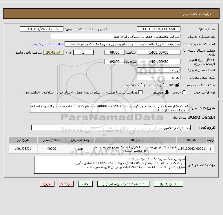 نام دستگاه خریدار:شرکت هواپیمایی جمهوری اسلامی ایران هما