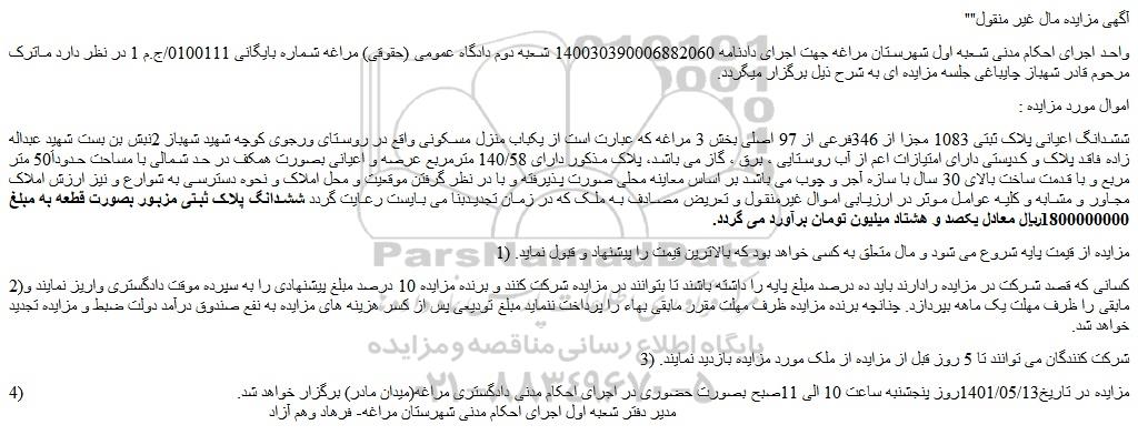 مزایده فروش ششدانگ اعیانی پلاک ثبتی 1083 مجزا از 346فرعی از 97 اصلی, مزایده فروش ششدانگ اعیانی پلاک ثبتی 1083 مجزا از 346فرعی از 97 اصلی