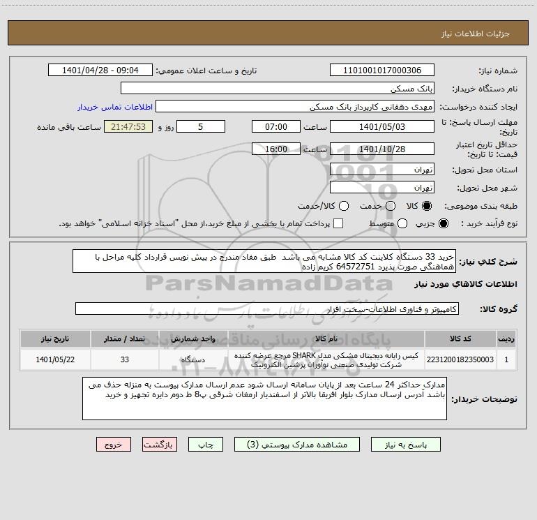 شرح کلی نیاز: خرید 33 دستگاه کلاینت کد کالا مشابه می باشد طبق مفاد مندرج در پیش نویس قرارداد کلیه مراحل با هماهنگی صورت پذیرد 64572751 کریم زاده