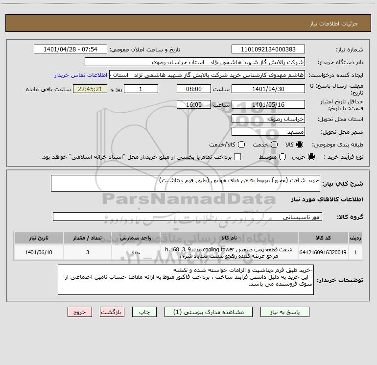 نام دستگاه خریدار:شرکت پالایش گاز شهید هاشمی نژاد استان خراسان رضوی