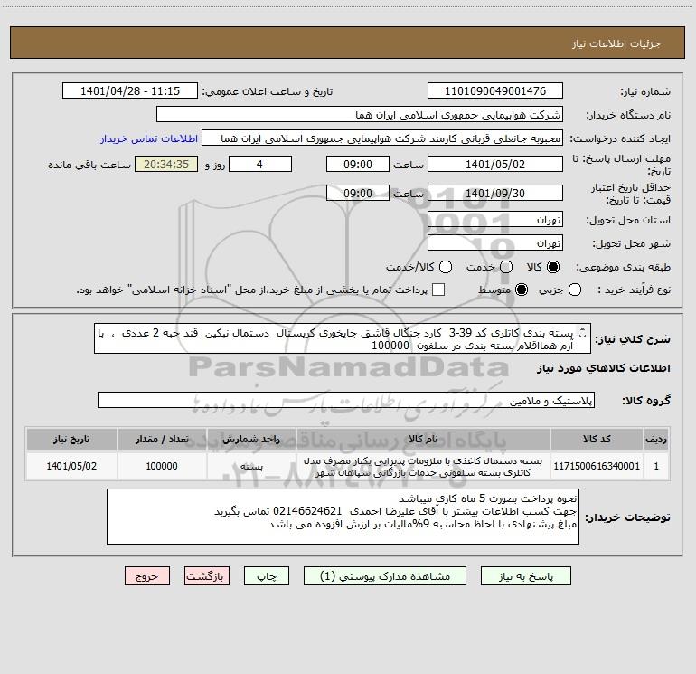 نام دستگاه خریدار:شرکت هواپیمایی جمهوری اسلامی ایران هما