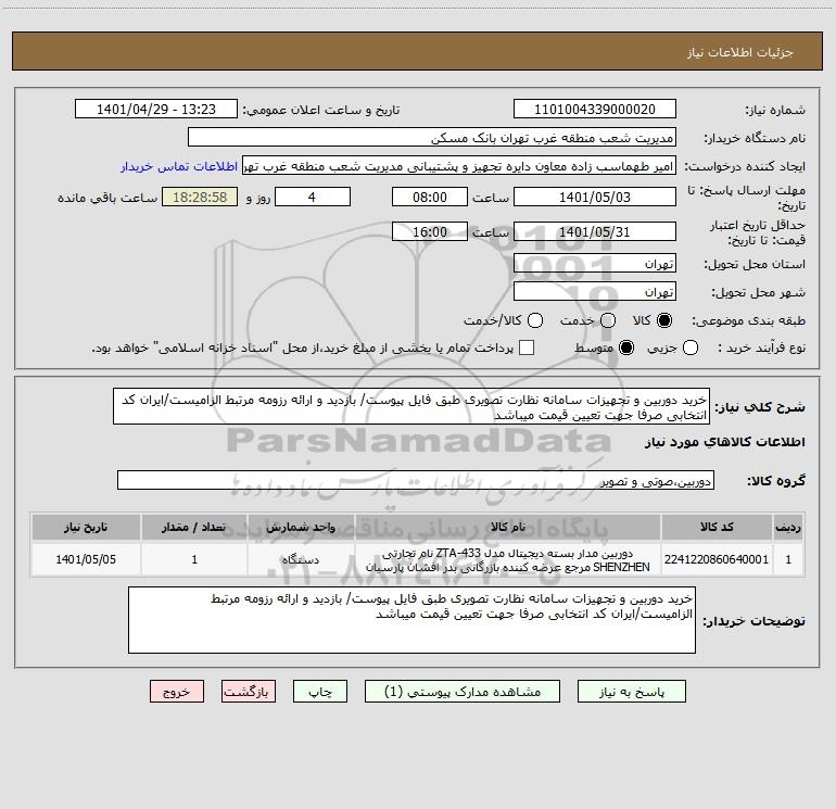 نام دستگاه خریدار:مدیریت شعب منطقه غرب تهران بانک مسکن
