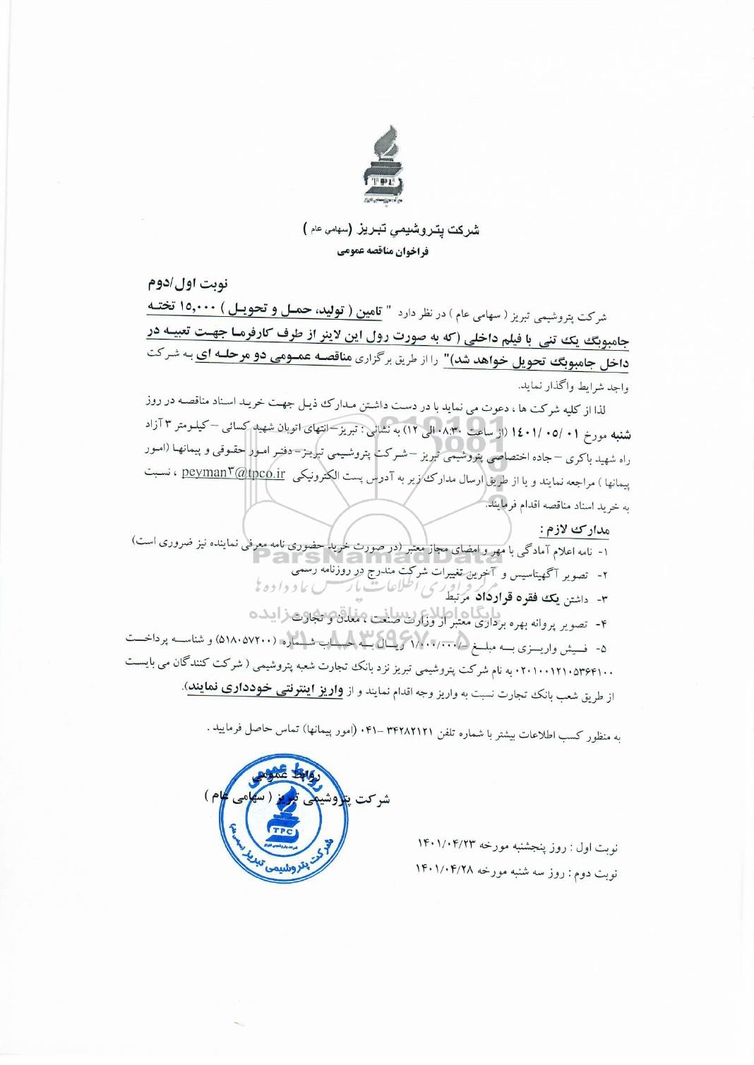 فراخوان مناقصه عمومی - نوبت اول /دوم