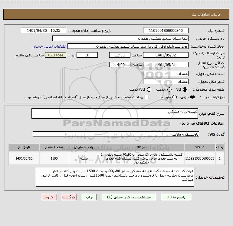 نام دستگاه خریدار:بیمارستان شهید بهشتی همدان