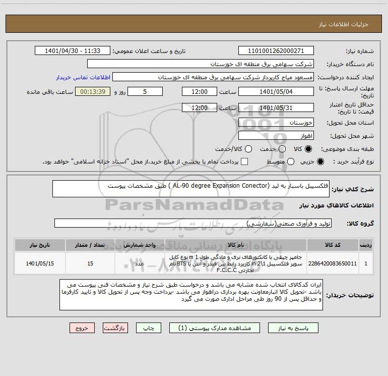 شرح کلی نیاز: فلکسیبل باسبار به لید (AL-90 degree Expansion Conector ) طبق مشخصات پیوست