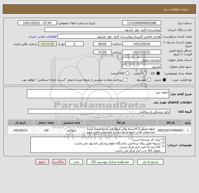 نام دستگاه خریدار:بیمارستان قایم عج مشهد