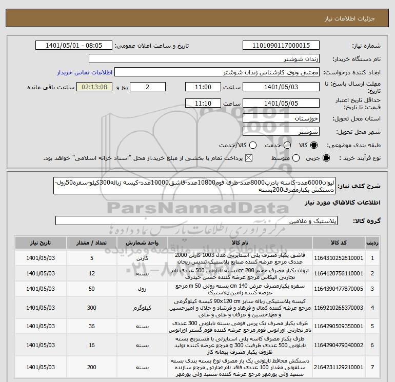 استعلام لیوان6000عدد-کاسه بادرب8000عدد-ظرف فوم10800عدد-قاشق10000عدد-کیسه زباله300کیلو-سفره50رول-دستکش یکبارمصرف200بسته, استعلام لیوان6000عدد-کاسه بادرب8000عدد-ظرف فوم10800عدد-قاشق10000عدد-کیسه زباله300کیلو-سفره50رول-دستکش یکبارمصرف200بسته