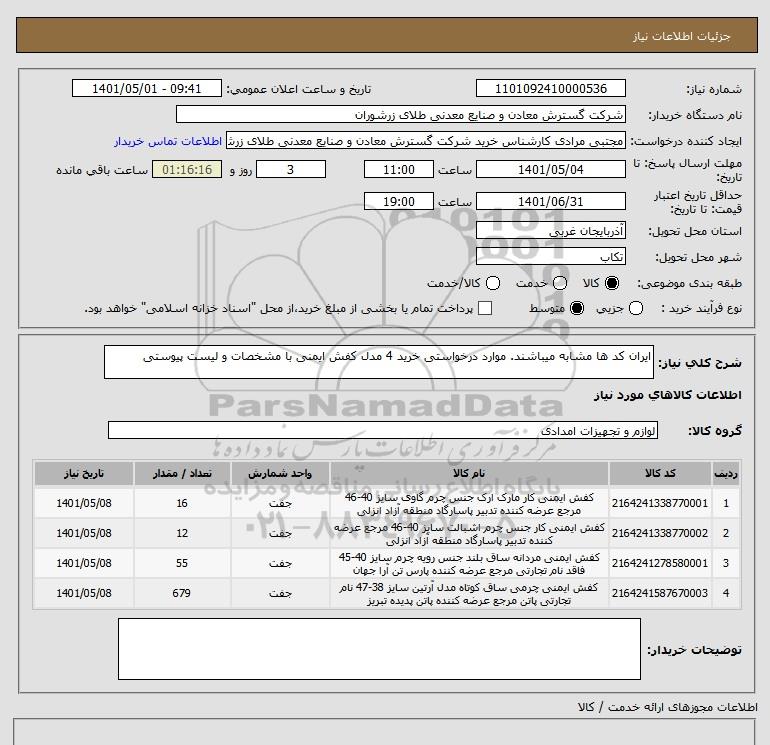 شرح کلی نیاز: ایران کد ها مشابه میباشند. موارد درخواستی خرید 4 مدل کفش ایمنی با مشخصات و لیست پیوستی