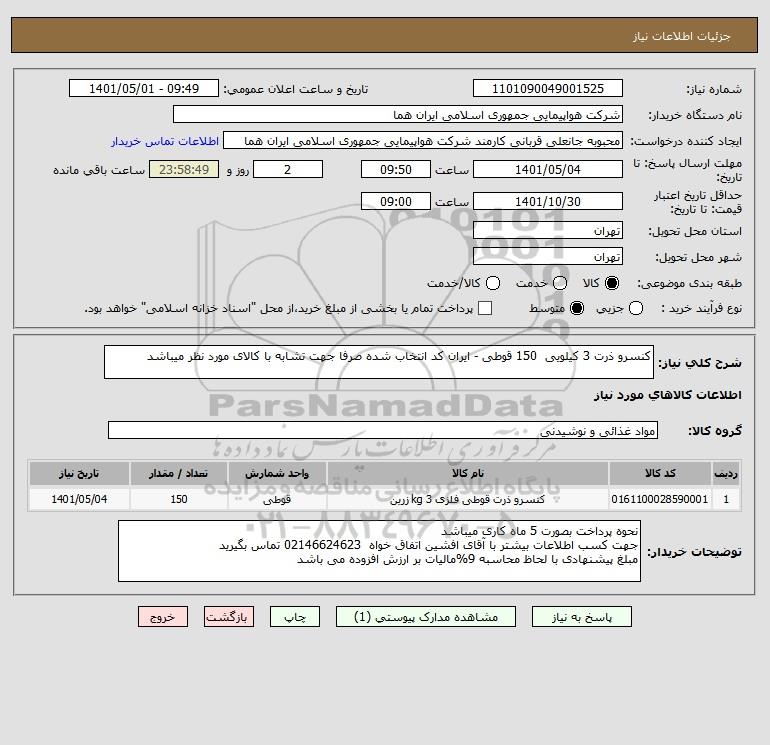 نام دستگاه خریدار:شرکت هواپیمایی جمهوری اسلامی ایران هما