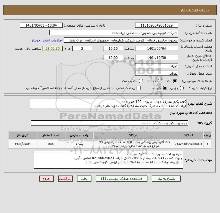 نام دستگاه خریدار:شرکت هواپیمایی جمهوری اسلامی ایران هما