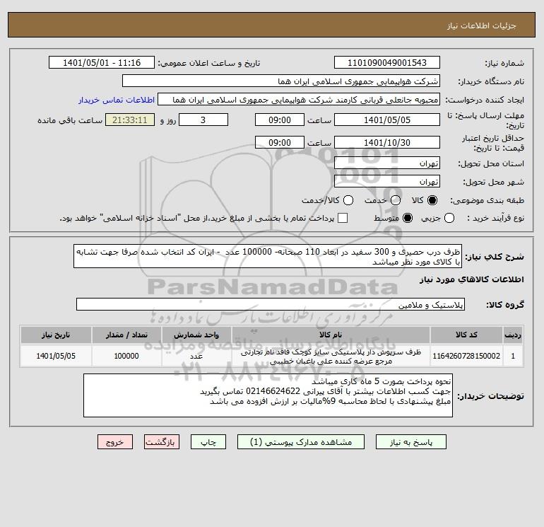 نام دستگاه خریدار:شرکت هواپیمایی جمهوری اسلامی ایران هما