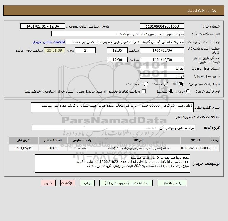 شرح کلی نیاز: بادام زمینی 20 گرمی 60000 عدد - ایران کد انتخاب شده صرفا جهت تشابه با کالای مورد نظر میباشد