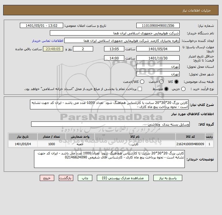 استعلام کارتن بزرگ 20*30*20 سانت با کارشناس هماهنگ شود تعداد 1000 عدد می باشد - ایران کد جهت تشابه است - نحوه پرداخت پنچ ماه کاری -, استعلام کارتن بزرگ 20*30*20 سانت با کارشناس هماهنگ شود تعداد 1000 عدد می باشد - ایران کد جهت تشابه است - نحوه پرداخت پنچ ماه کاری -