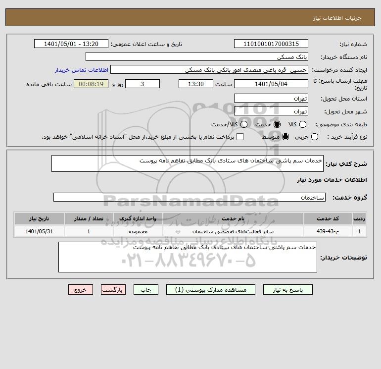 توضیحات خریدار:خدمات سم پاشی ساختمان های ستادی بانک مطابق تفاهم نامه پیوست