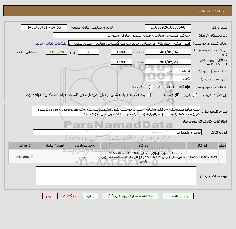 نام دستگاه خریدار:شرکت گسترش معادن و صنایع معدنی طلای زرشوران