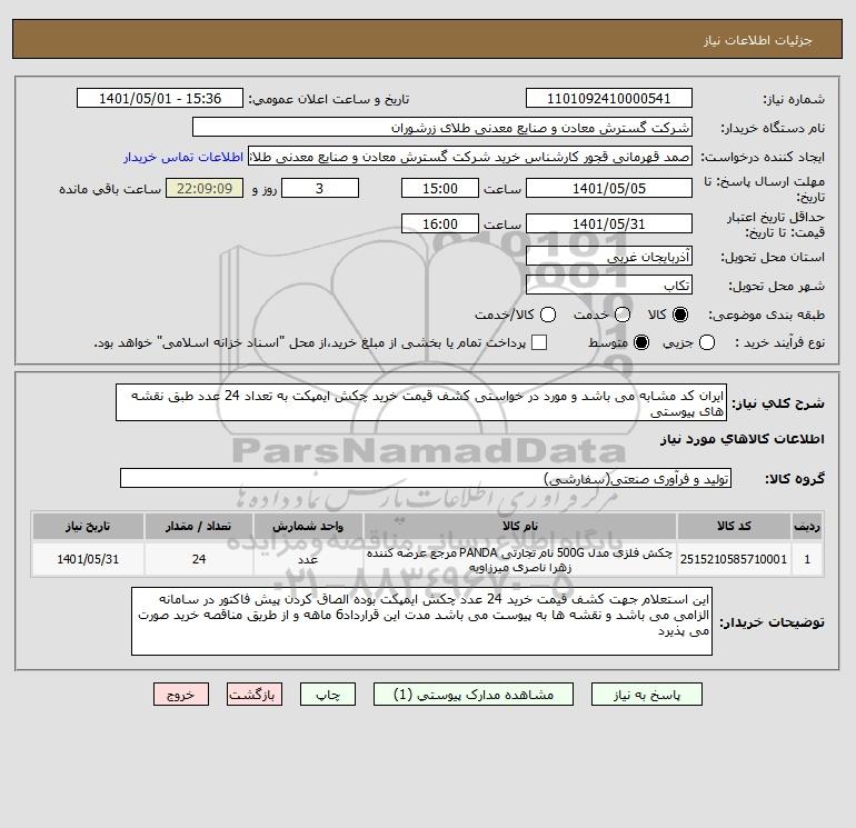 نام دستگاه خریدار:شرکت گسترش معادن و صنایع معدنی طلای زرشوران
