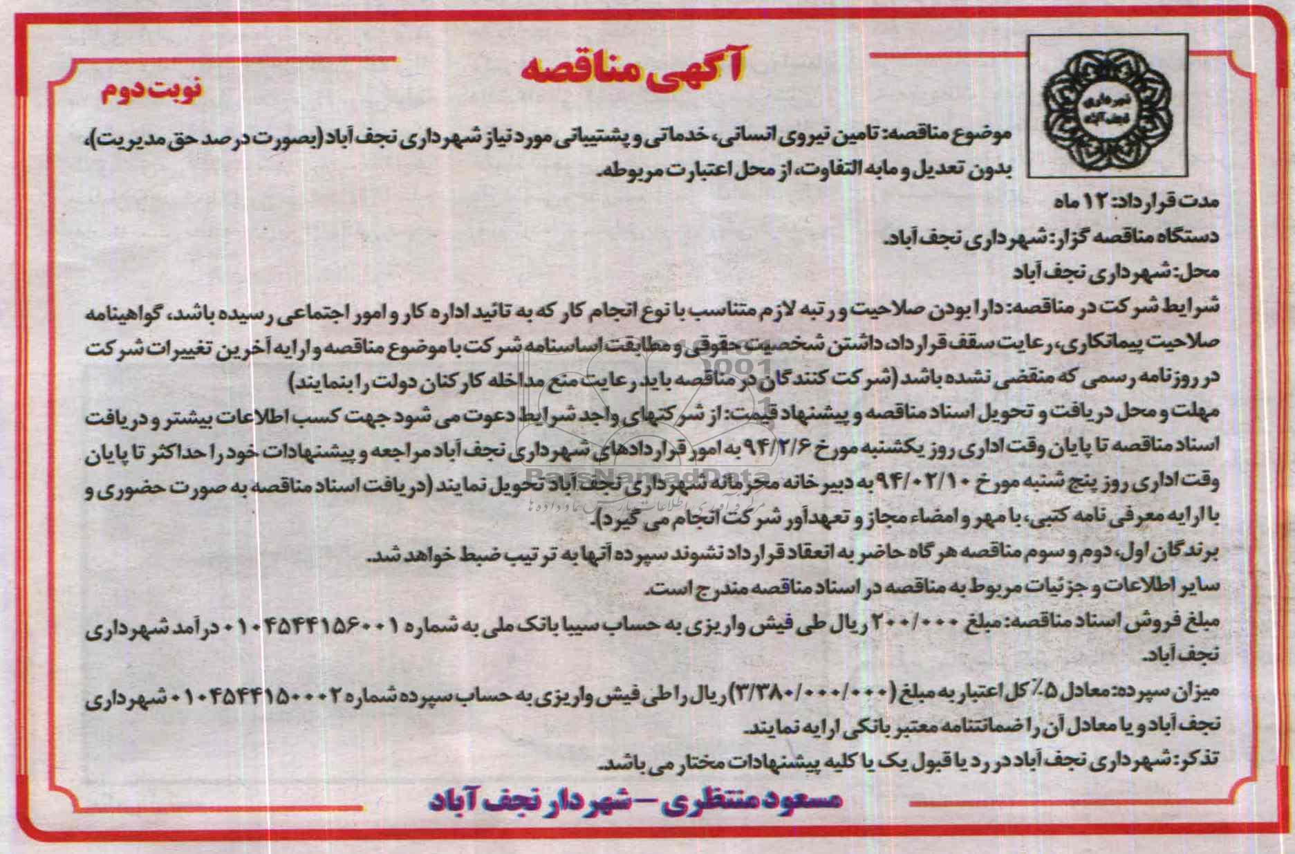دستگاه مناقصه گزار شهرداری نجف آباد