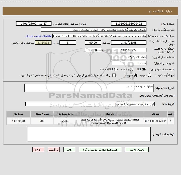 نام دستگاه خریدار:شرکت پالایش گاز شهید هاشمی نژاد استان خراسان رضوی