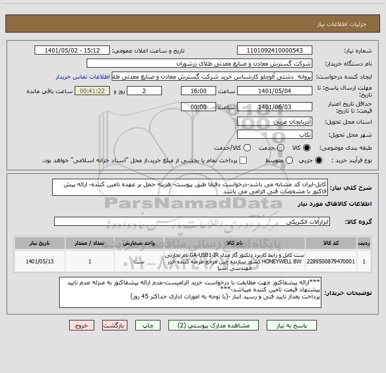 نام دستگاه خریدار:شرکت گسترش معادن و صنایع معدنی طلای زرشوران