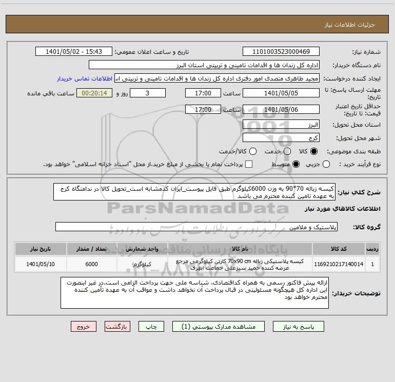 نام دستگاه خریدار:اداره کل زندان ها و اقدامات تامینی و تربیتی استان البرز