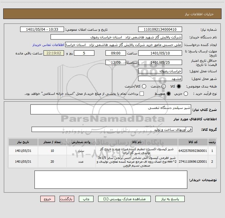 نام دستگاه خریدار:شرکت پالایش گاز شهید هاشمی نژاد استان خراسان رضوی