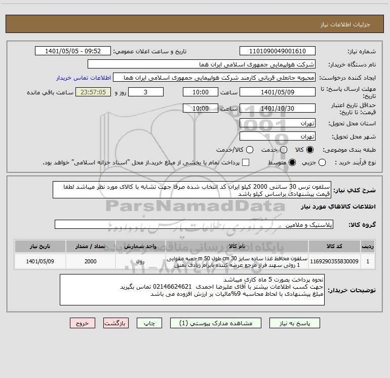نام دستگاه خریدار:شرکت هواپیمایی جمهوری اسلامی ایران هما